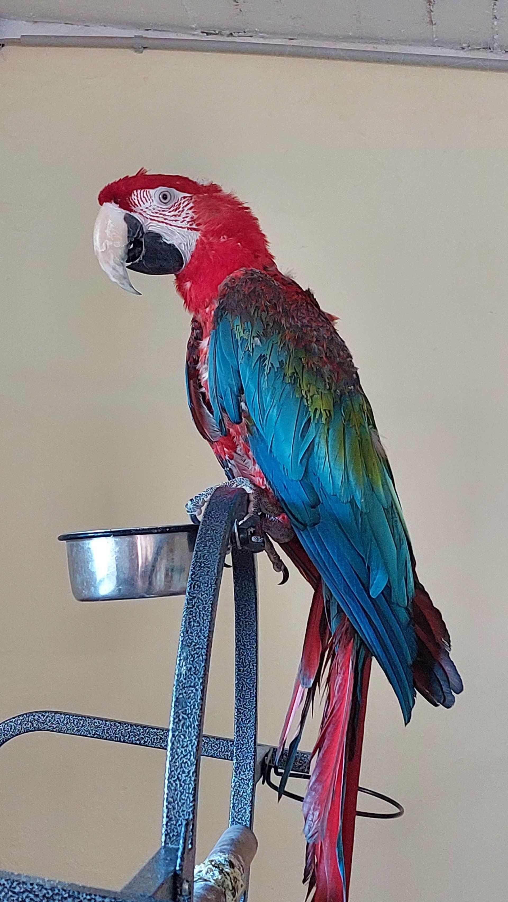 Er war sehr scheu und sein Federkleid war eher ein Fleckenteppich. Carlos hat sich fast nackt gerupft.