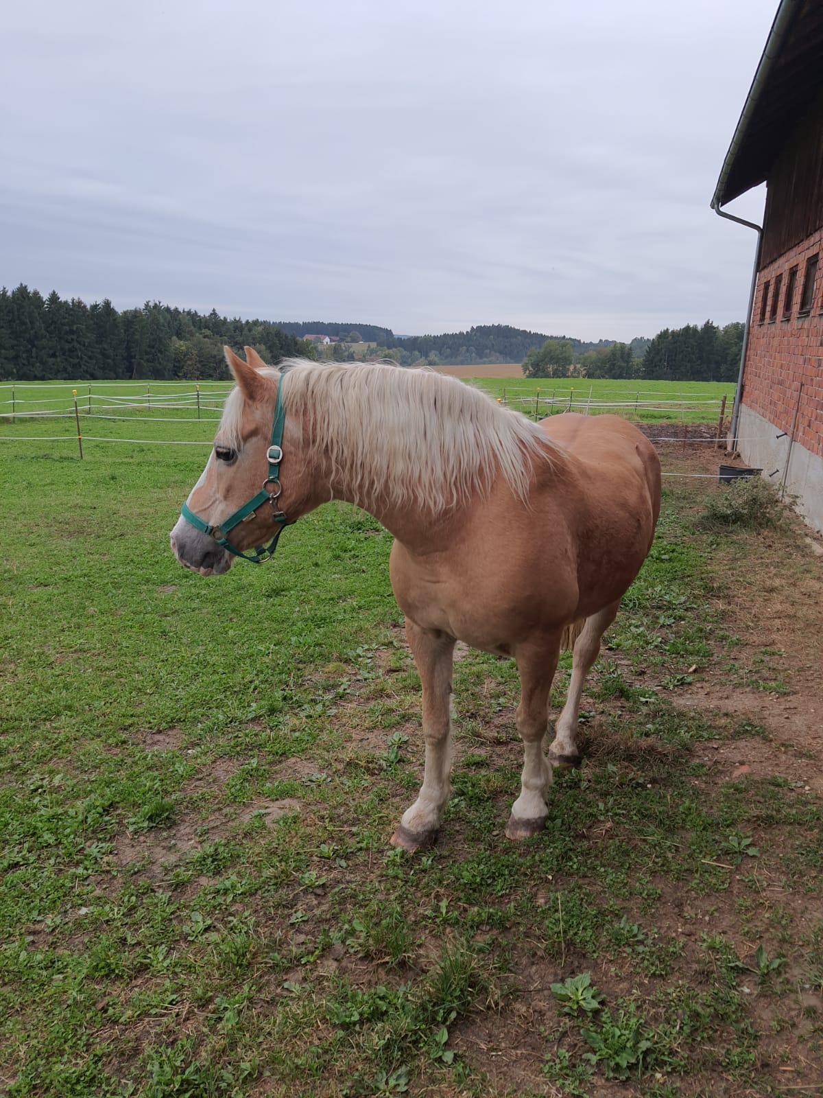 Ella ist ebenfalls eine alte Haflingerstute. Sie sollte mit ihrer Partnerin auf einen neuen Platz umziehen.